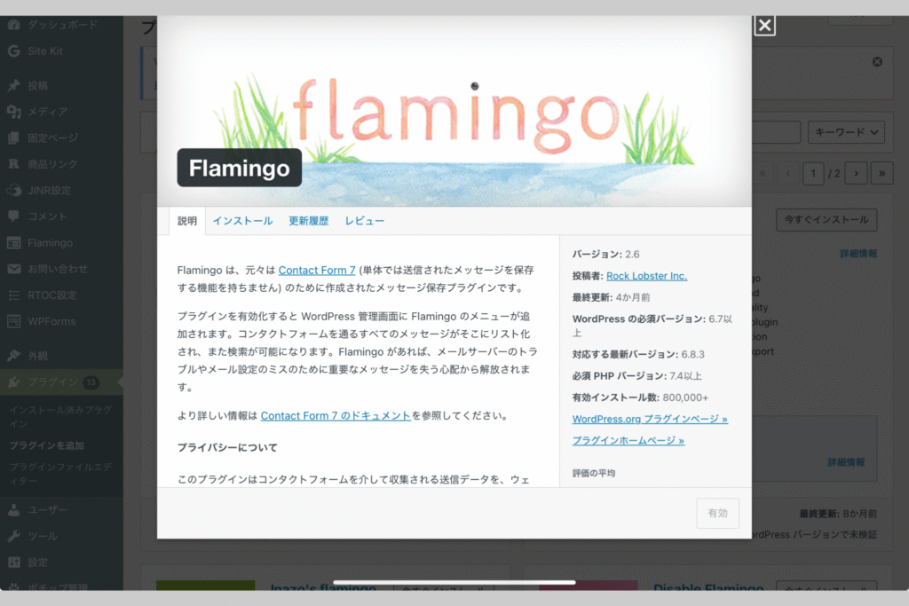 - 「Flamingo」をインストール → 有効化。