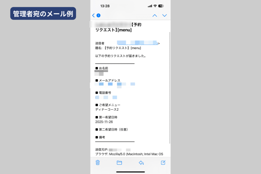 【予約】管理者宛メール(メールタブ)