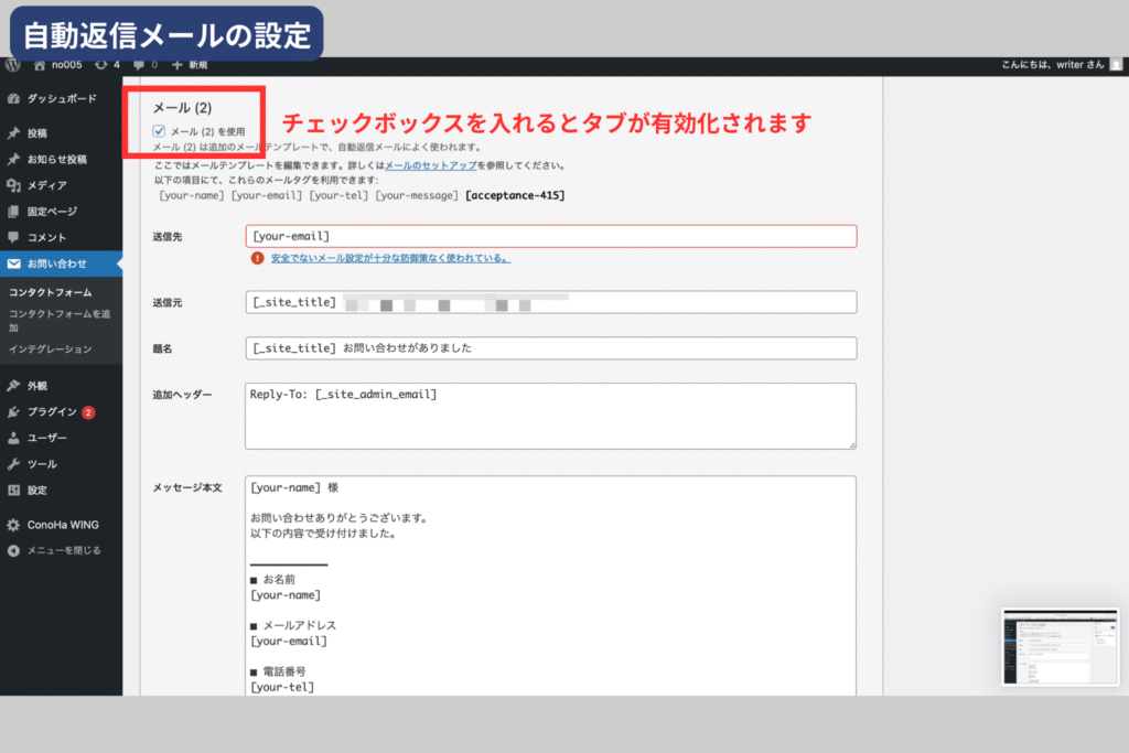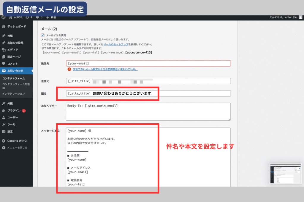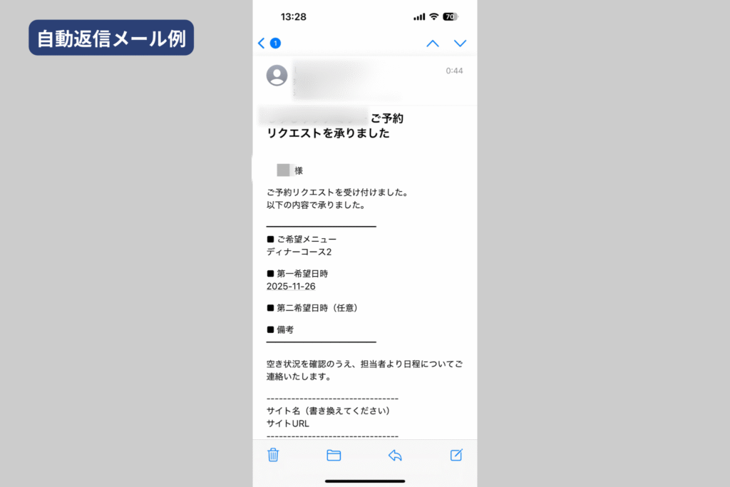 自動返信を設定することで、ユーザーに「送信できた」という安心感を与えられます。
