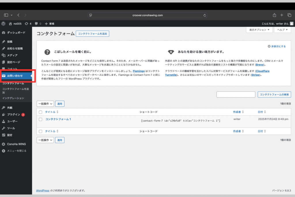 FlamingoはContact Form 7と同じ方が作った無料のプラグインです!