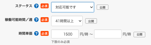 「稼働可能時間/週」は、自分が稼働できる時間を選択してください。