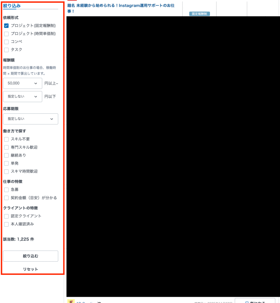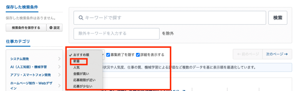 - 募集終了を隠す:現在募集中の案件だけを表示できます。