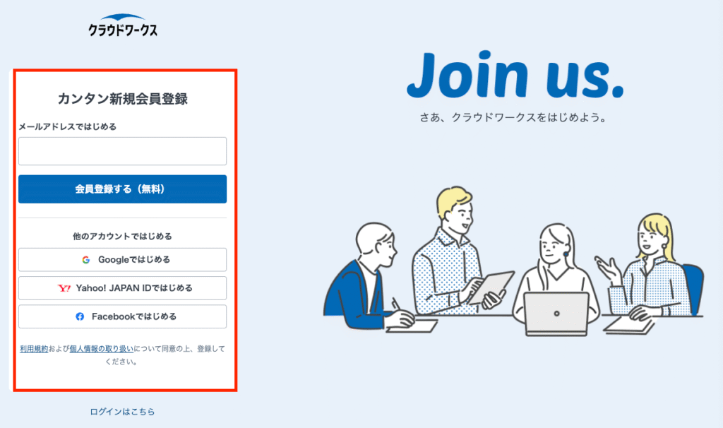 まずは、クラウドワークスに無料登録をしていきますよ。
