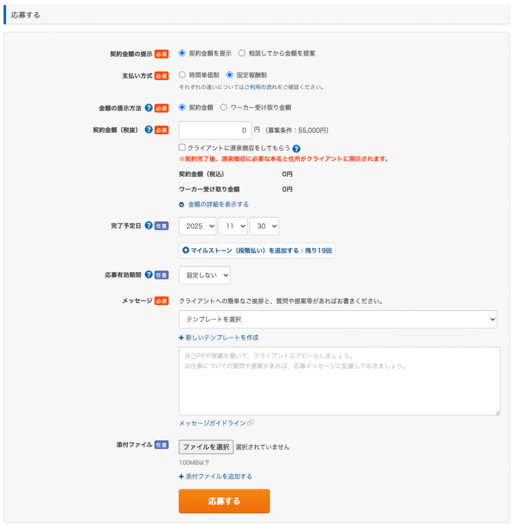 - 予算:自分のスキルに合った金額帯を設定(例:5万円〜)