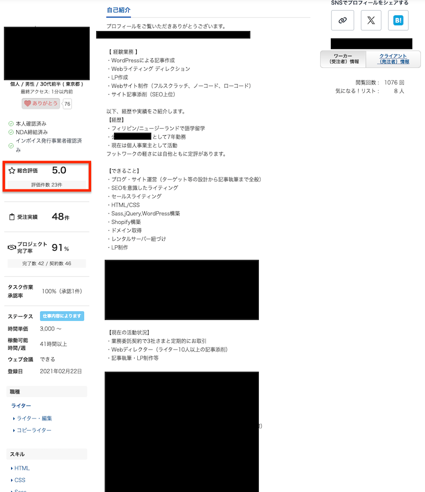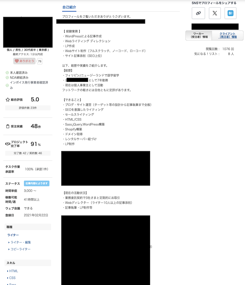 クラウドワークスで案件を受注するための“名刺代わり”として機能するのがプロフィールです。
