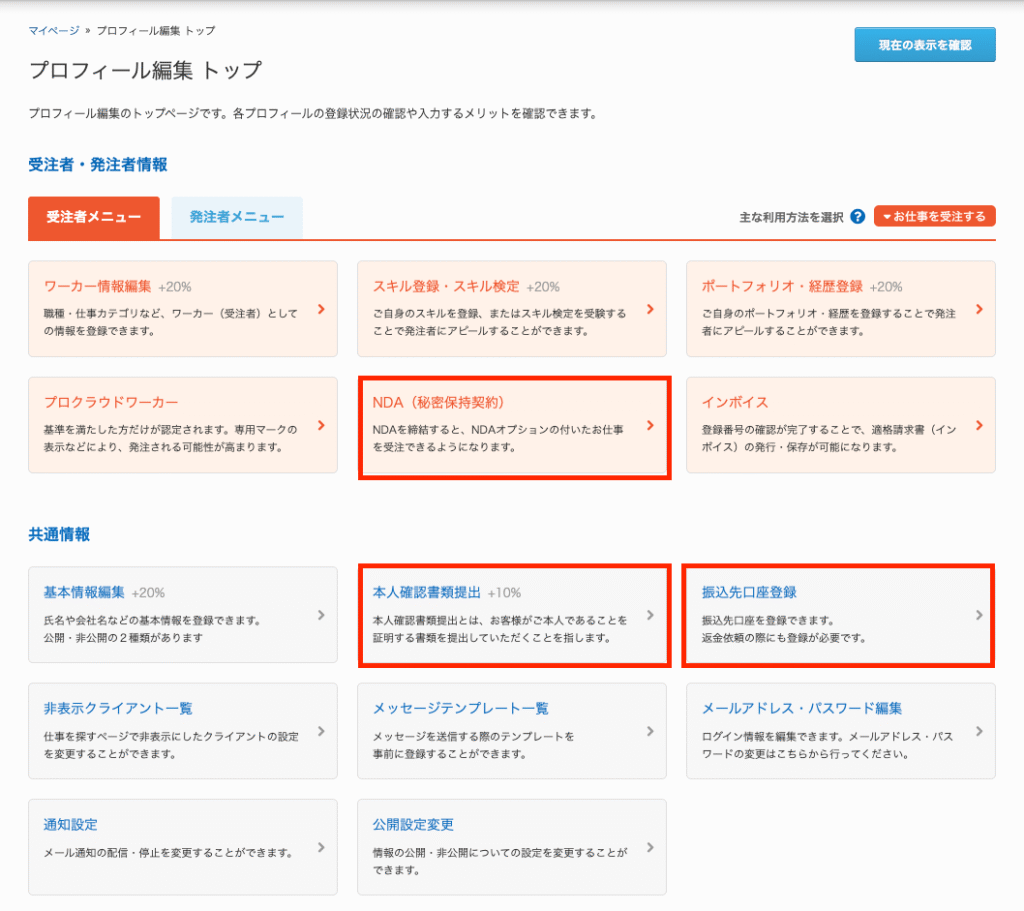 クラウドワークスでは、信頼性を高めるために「本人確認」「秘密保持契約(NDA)」「振込口座登録」の3点は必ず済ませます。