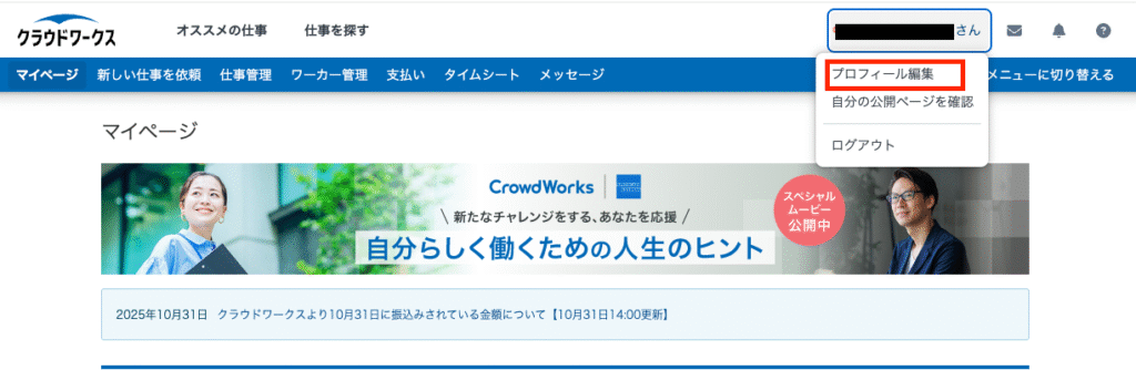 → 「プロフィール編集」ページでチェックを入れるだけ。 - 支払い設定:報酬を受け取る銀行口座を登録します。