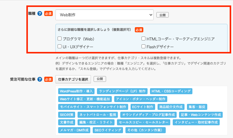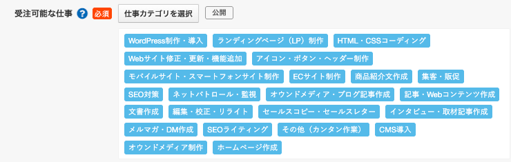 「受注可能な仕事」の「仕事カテゴリを選択」をクリックします。