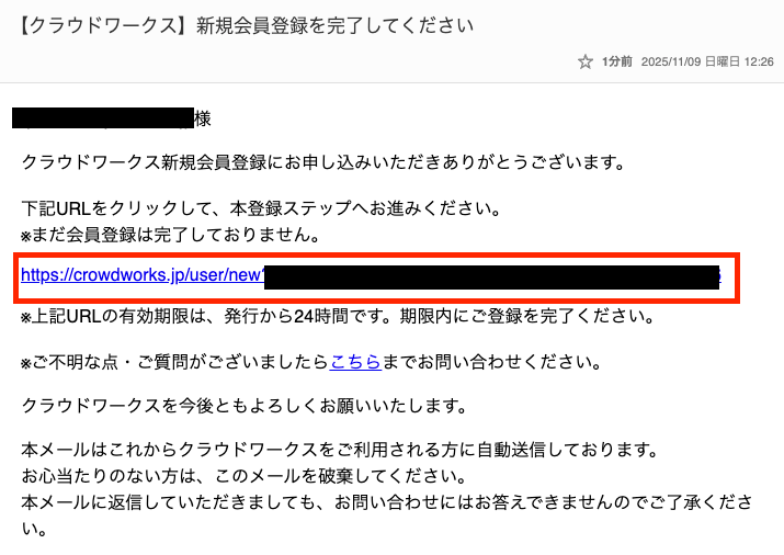登録後に届く確認メールのリンクをクリックすると、本登録が完了します。