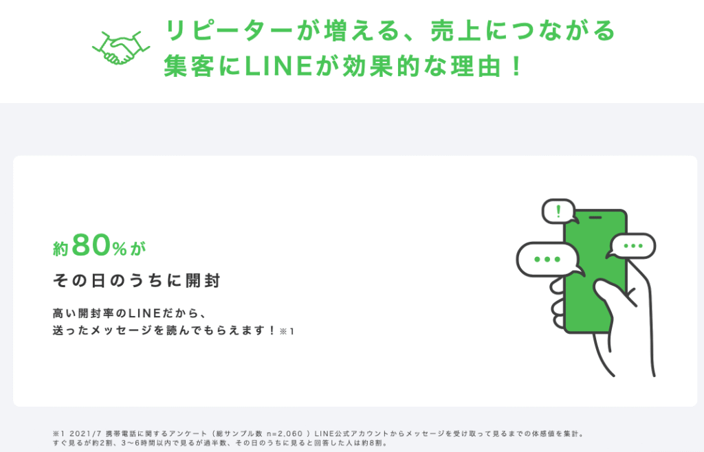 LINEは日本人の9割以上が使うアプリで、お客様に新しいツールを覚えてもらう必要もありません。