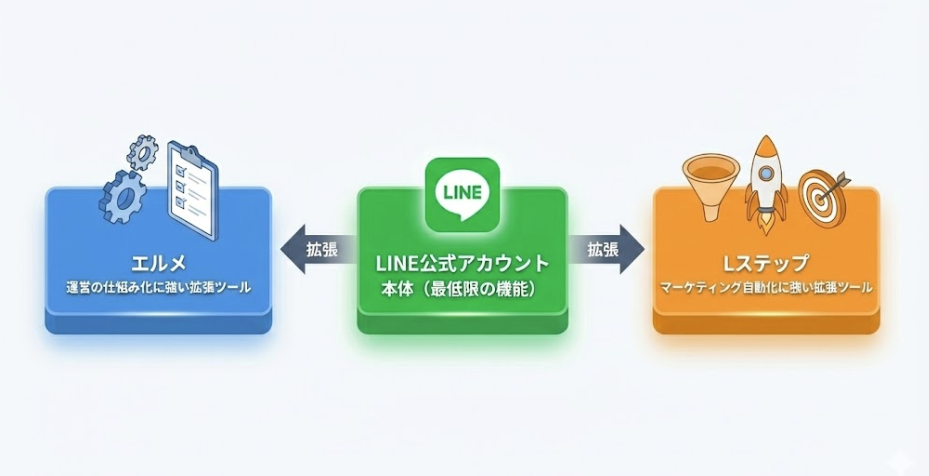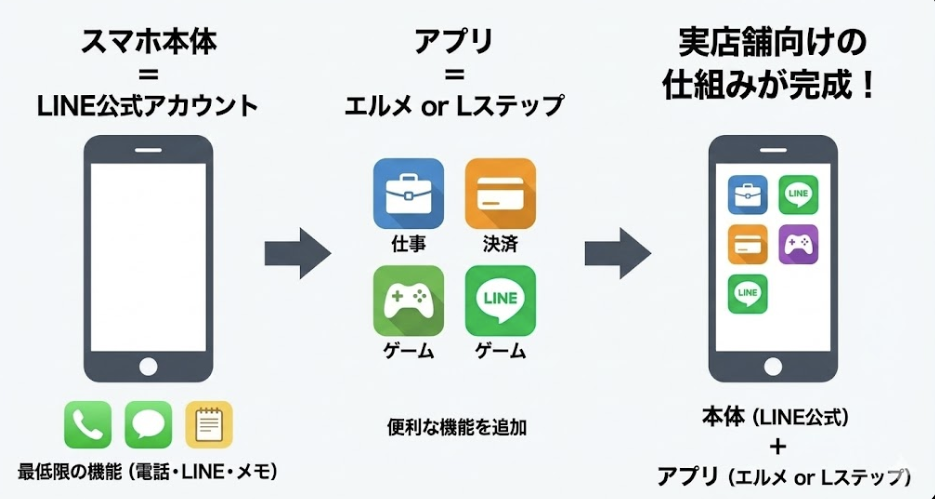本体(LINE公式)+ アプリ(エルメ or Lステップ)