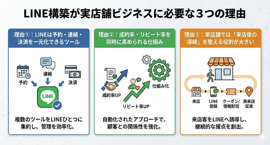 ここでは、実店舗がLINE構築を導入すべき理由を3つにまとめて解説します。