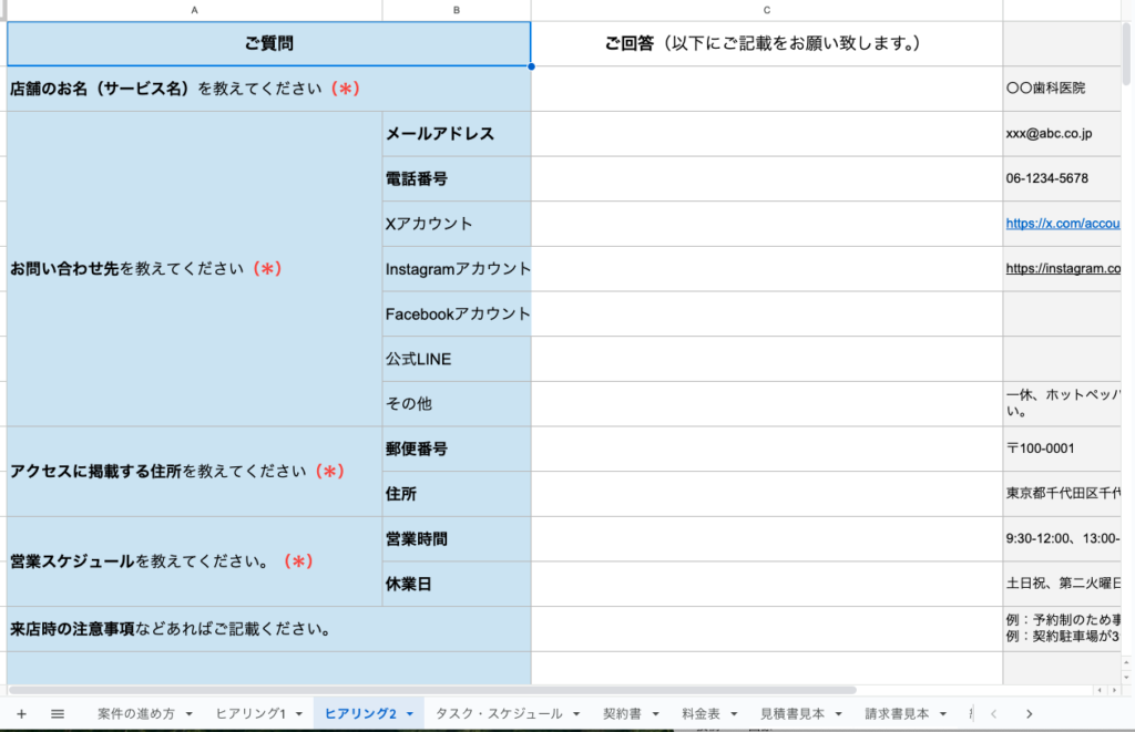 ヒアリングシート