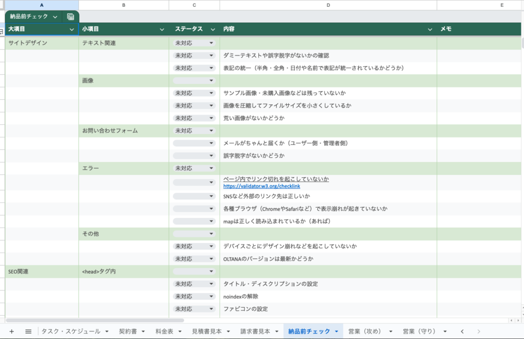 納品前チェックシート