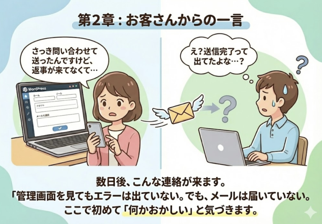 - 「お問い合わせフォームを設置したのに、なぜかメールが届かない…」