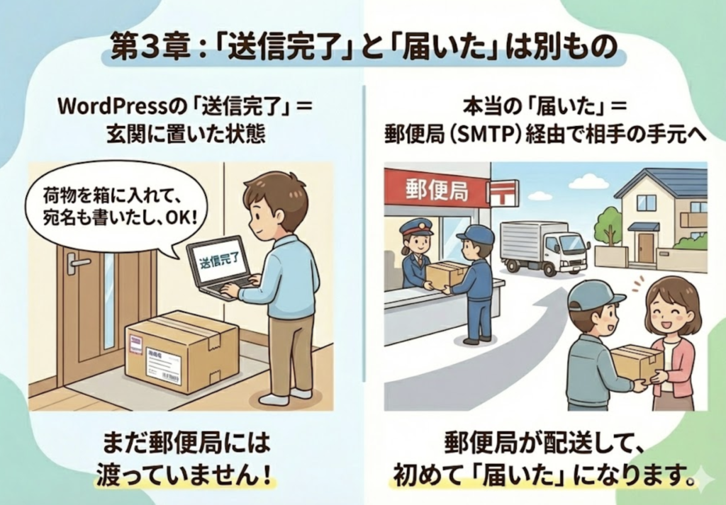 この記事では、なぜメールが届かないのかという原因を、専門用語をできるだけ使わず、物語形式でやさしく解説します。