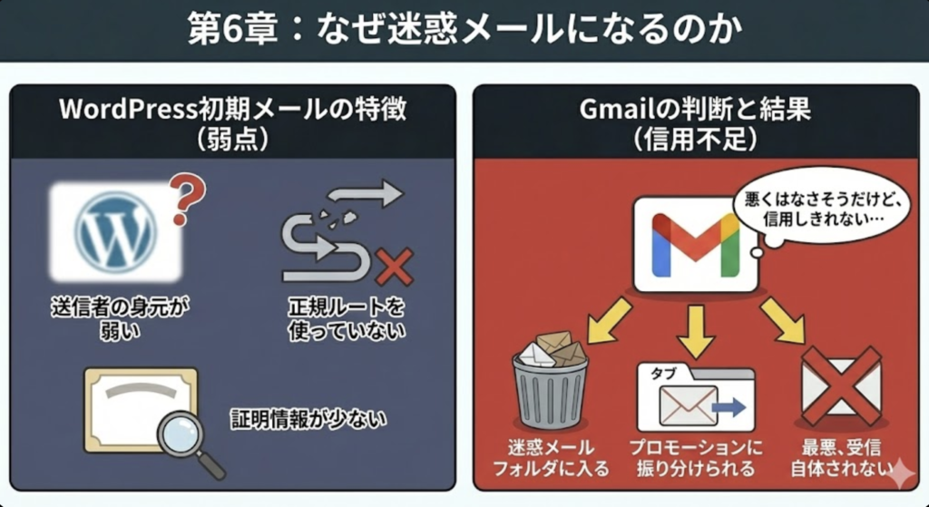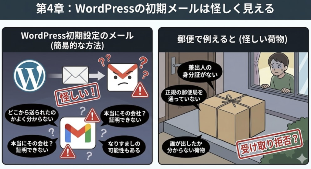 WordPressの初期設定のまま送られるメールは、差出人の身元がとても弱い状態です。
