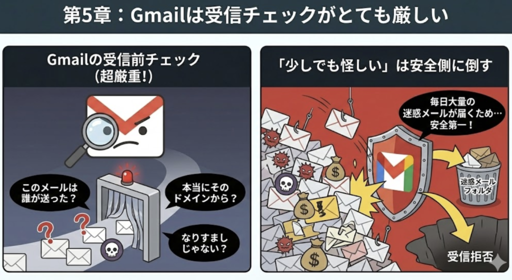 SMTP経由のメールを見ると、Gmailはこう判断します。