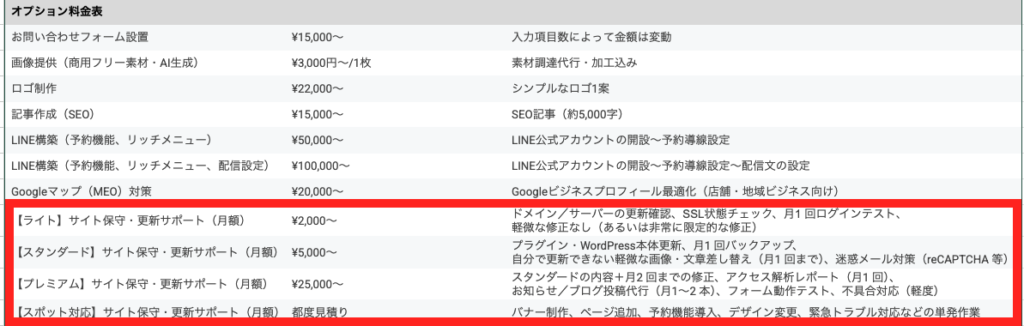 ここで納品後の「保守契約」があることを伝え、クライアントの不安を和らげましょう。