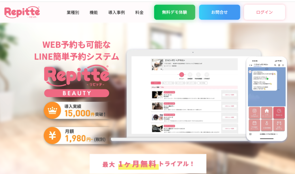 - リピッテ:LINE予約+Web予約を連携できる。リマインダー機能あり。