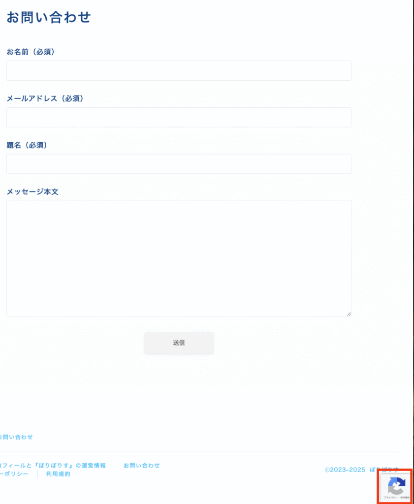 これはGoogle reCAPTCHAといって、迷惑メールや不正アクセスを大幅に減らせる必須のツールなんですよね。