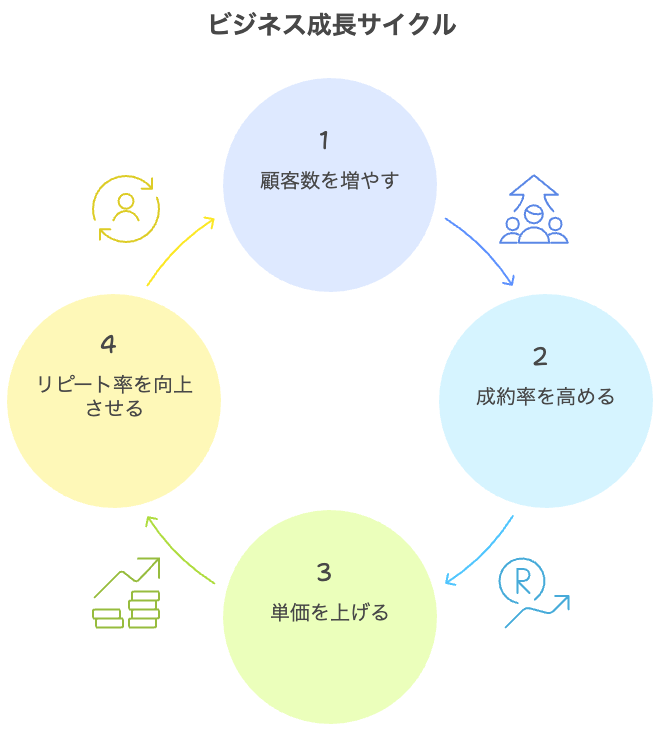 「顧客数 × 成約率 × 単価 × リピート率」