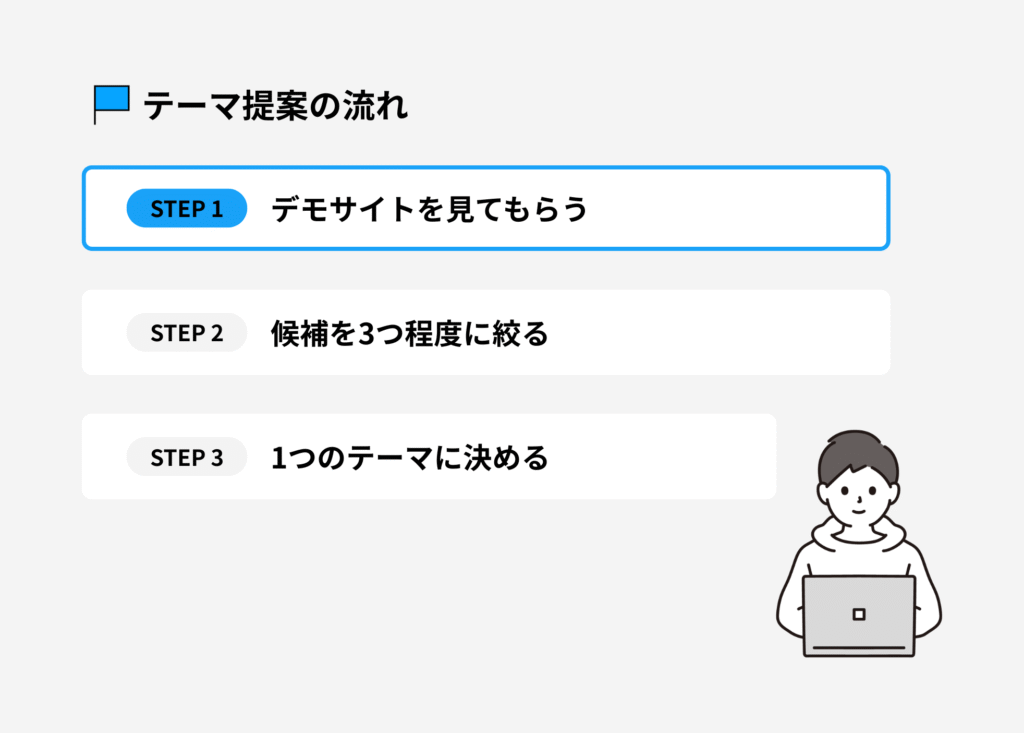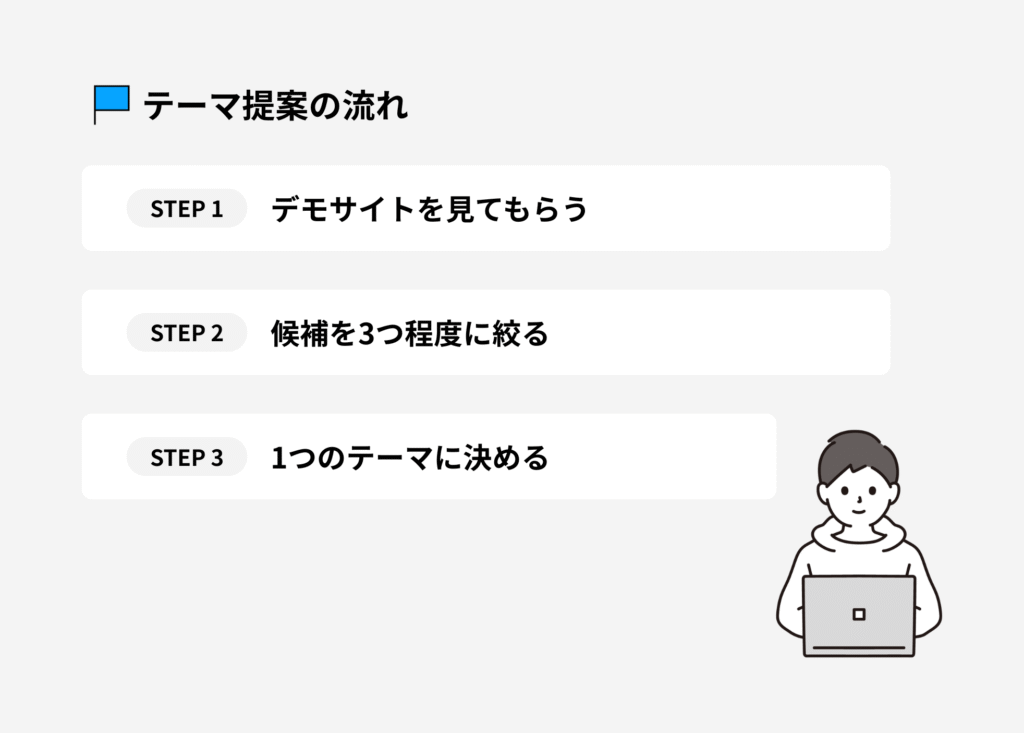 この記事では、OLTANAのデモページを参考にした、テーマの提案方法を3ステップ紹介します。