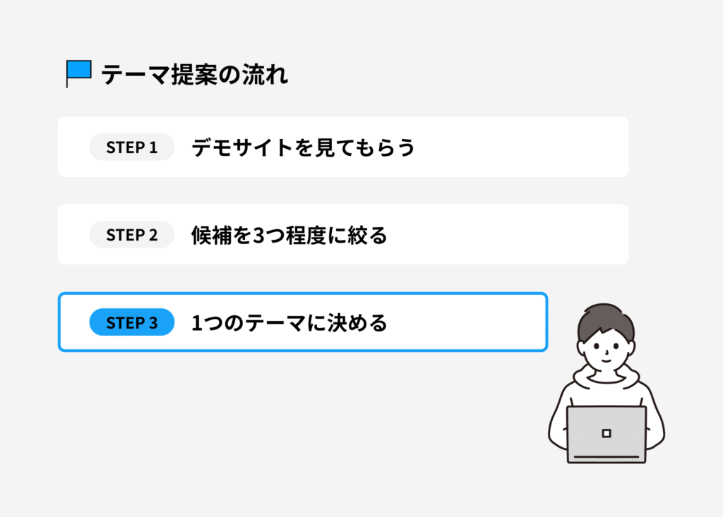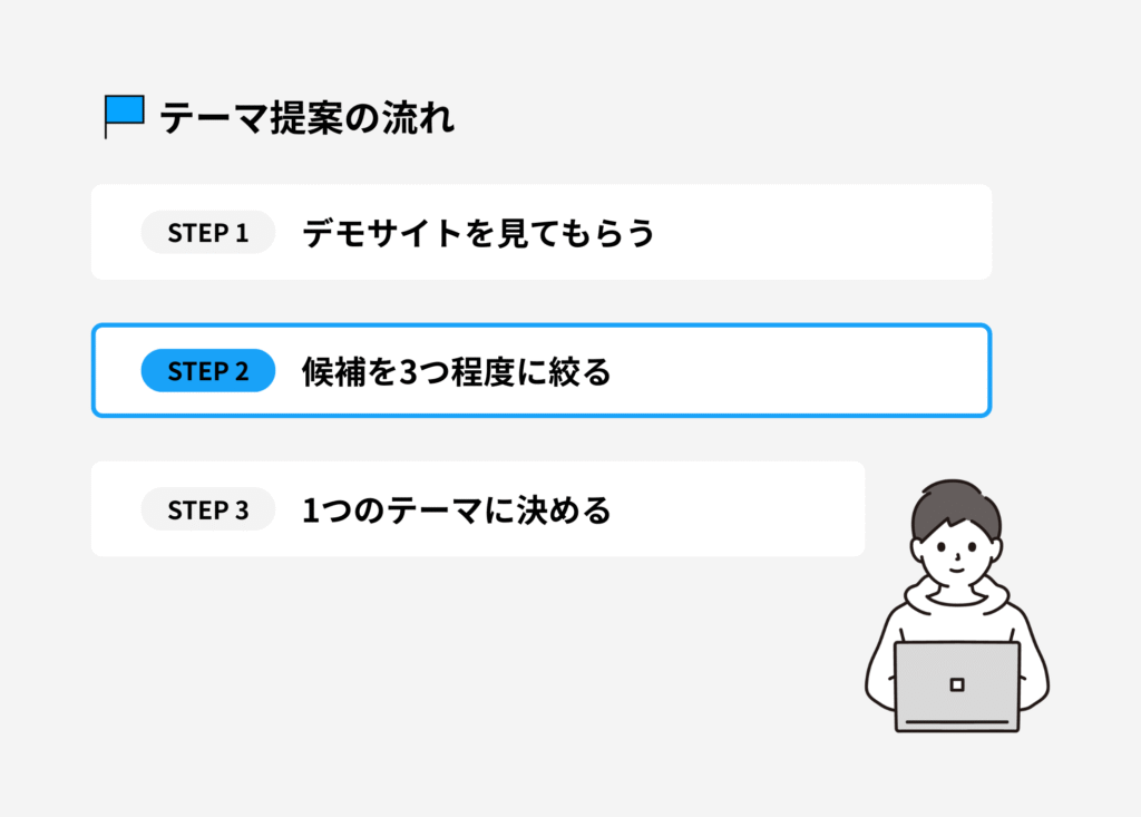 制作者側でテーマを提案する際は、次の3ステップで進めていきます。