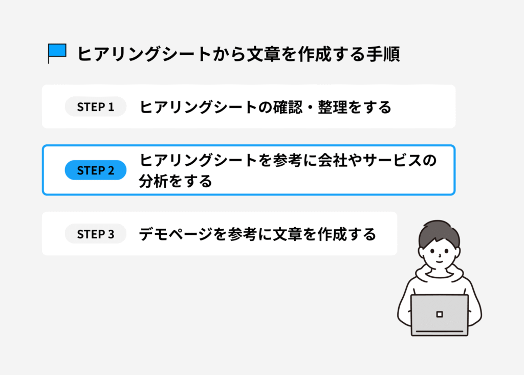 【STEP2】ヒアリングシートを参考に会社やサービスの分析をする