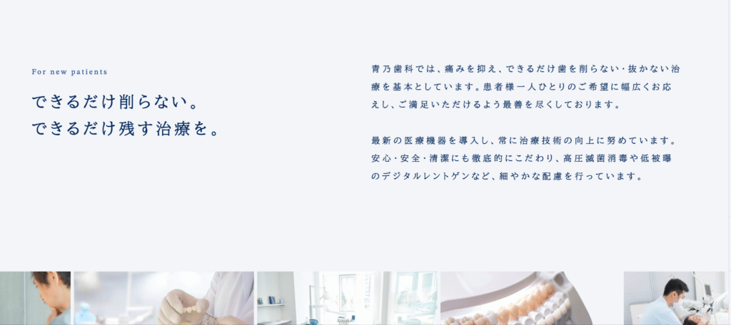 「できるだけ削らない・残す」という治療方針が最初に書かれており、安心感がありますね!