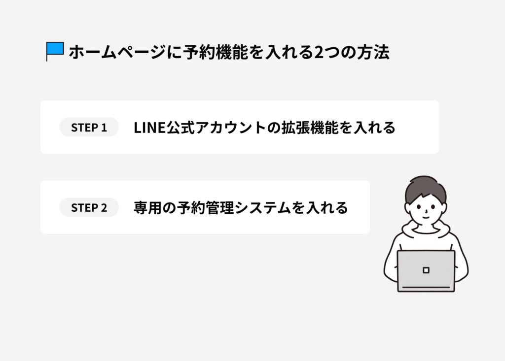ホームページに予約機能を入れる方法は、主に2つあります。